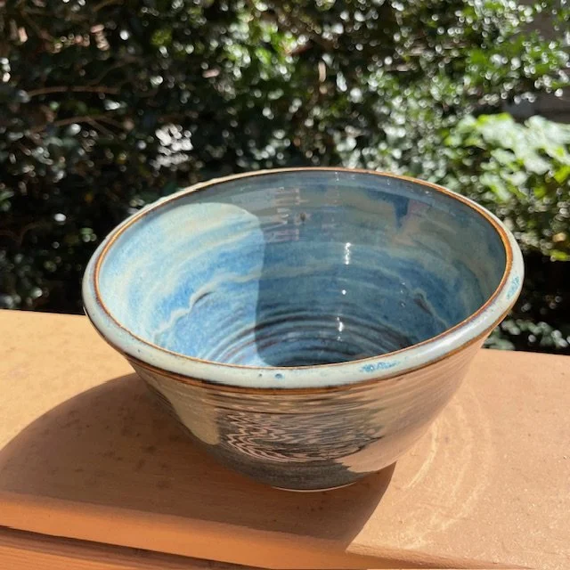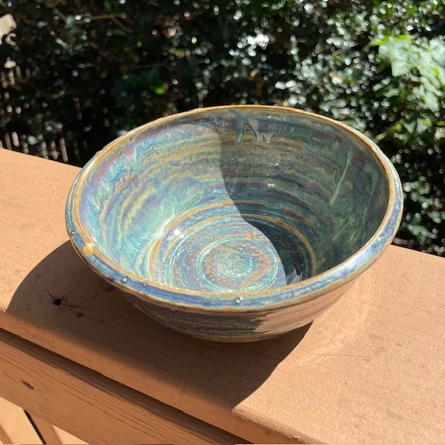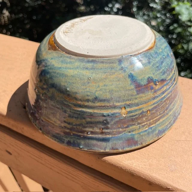 This large serving bowl is mesmerizing. The brown hues against the cream would look so good on a counter holding apples, or in the center of the table with a zesty salad.